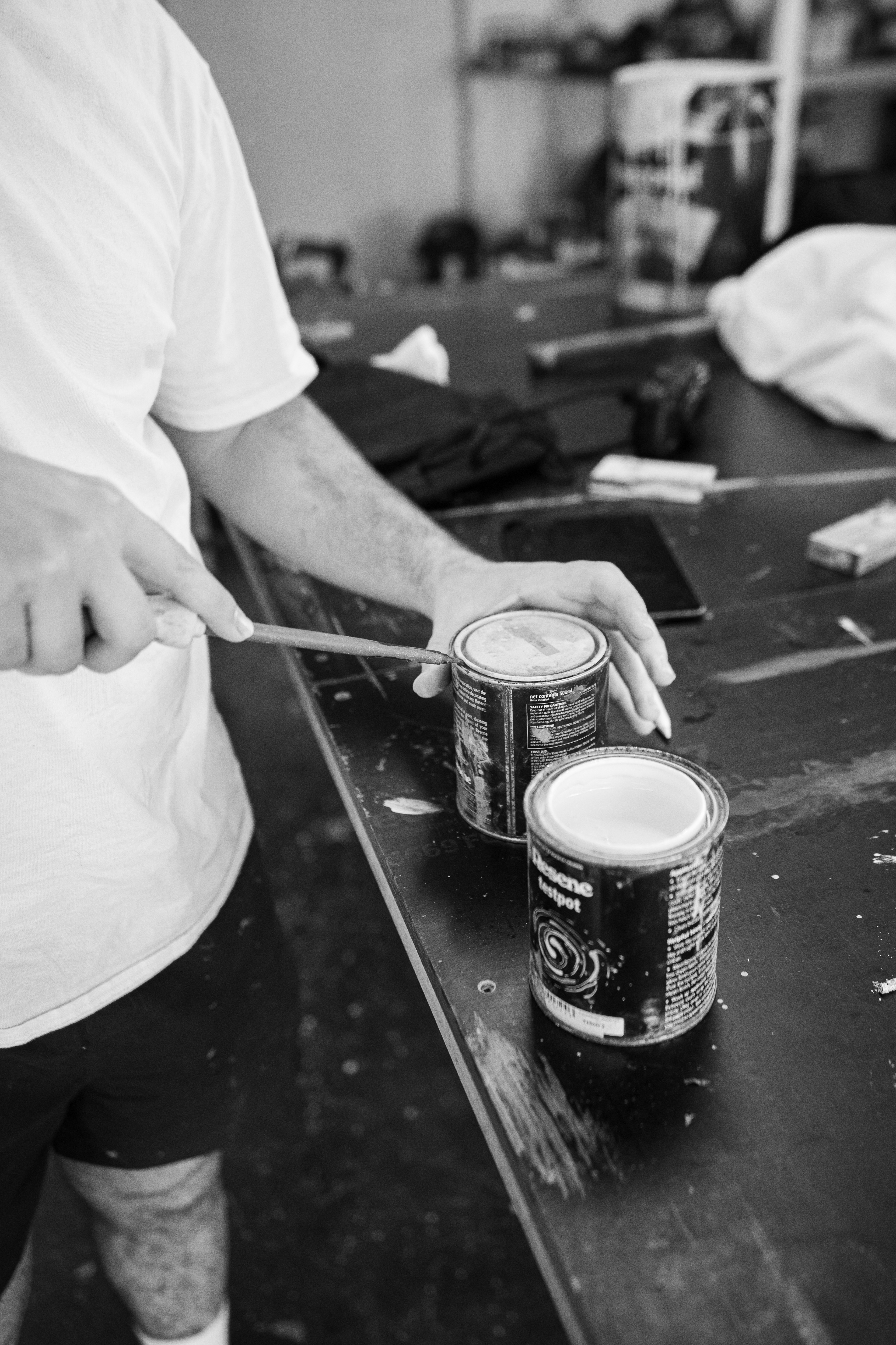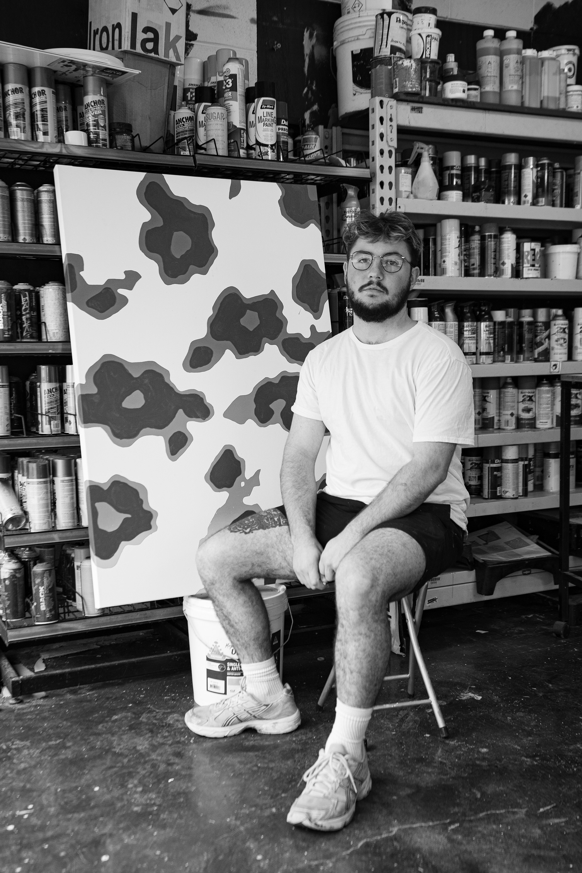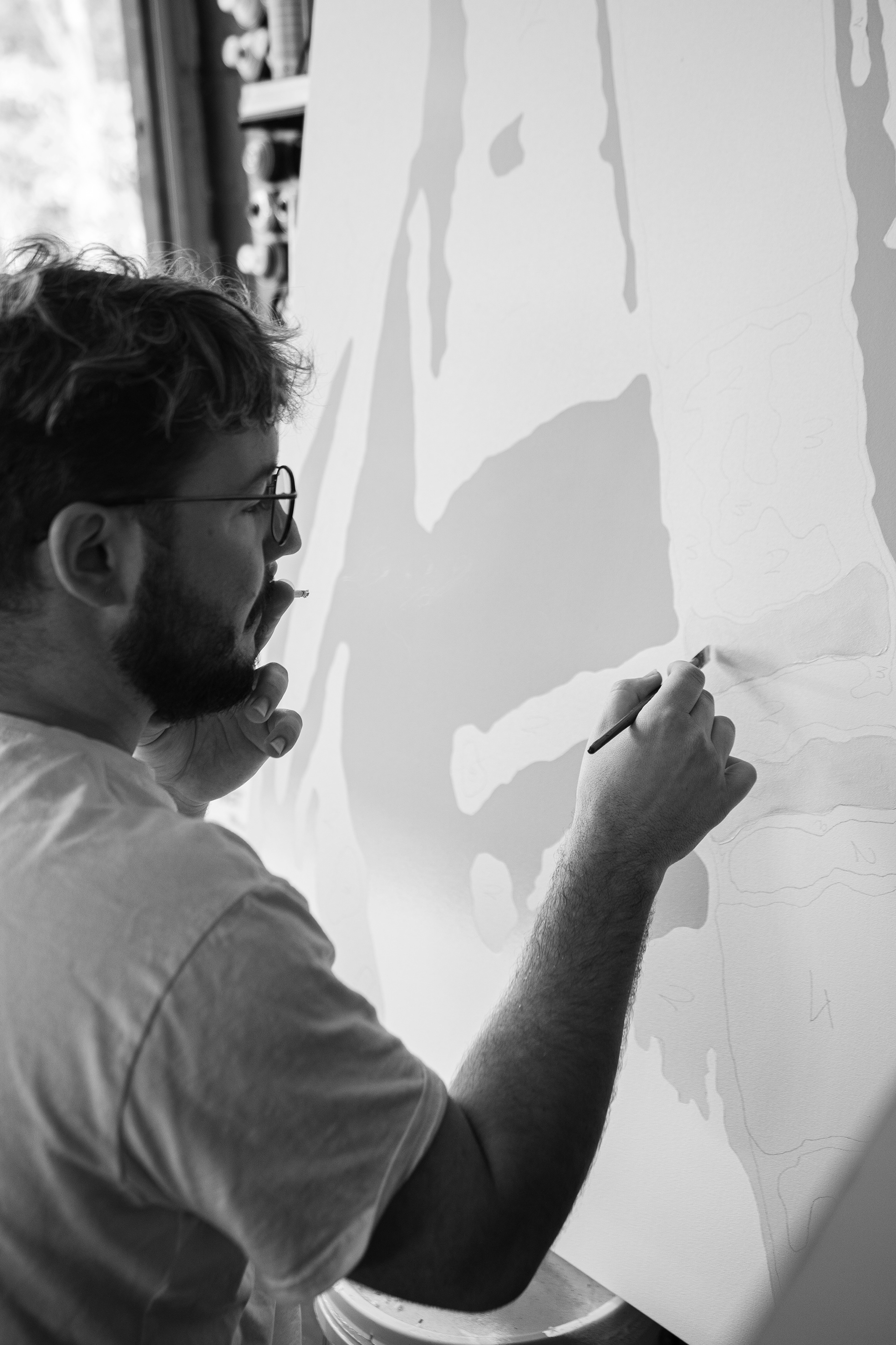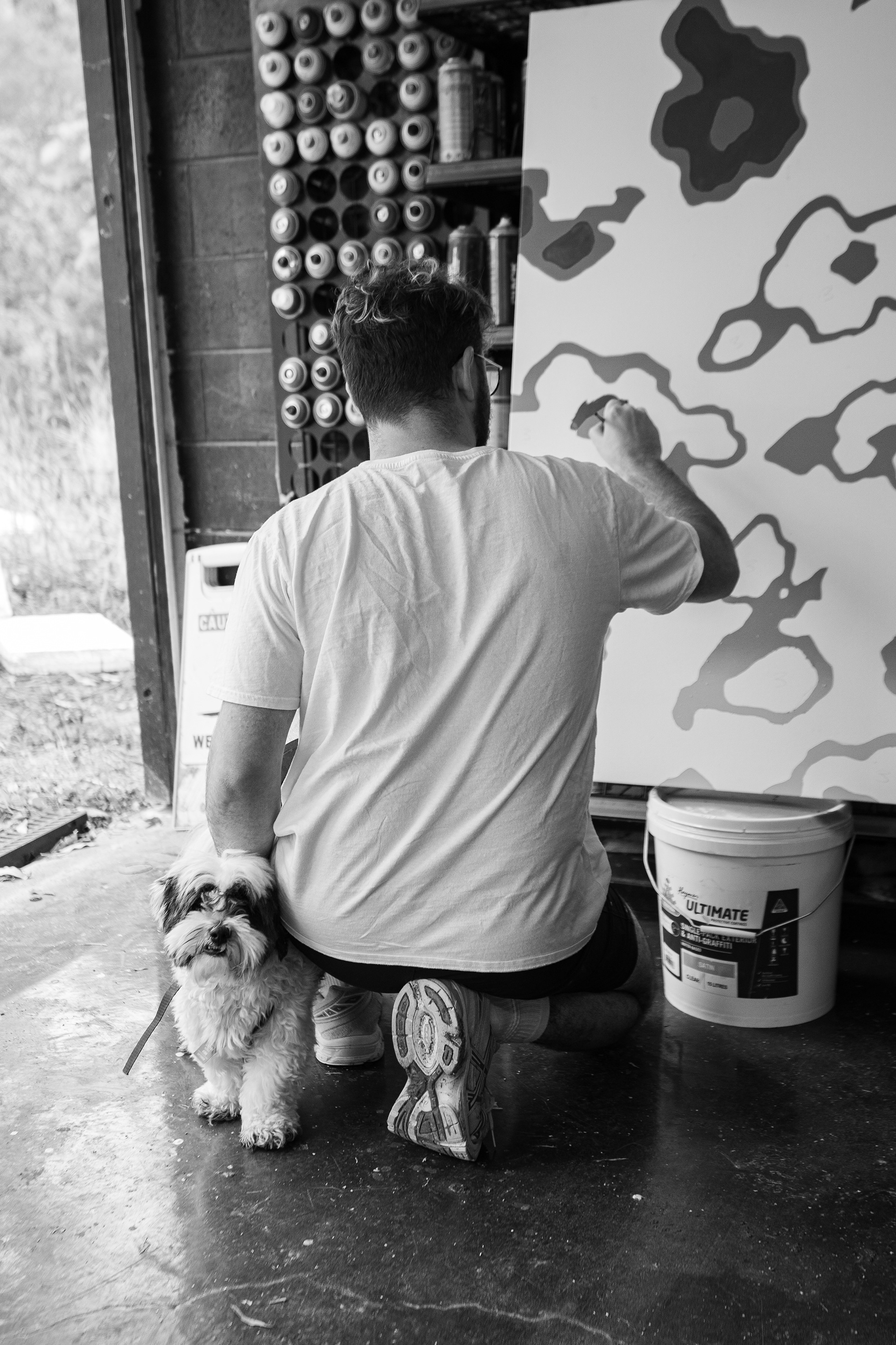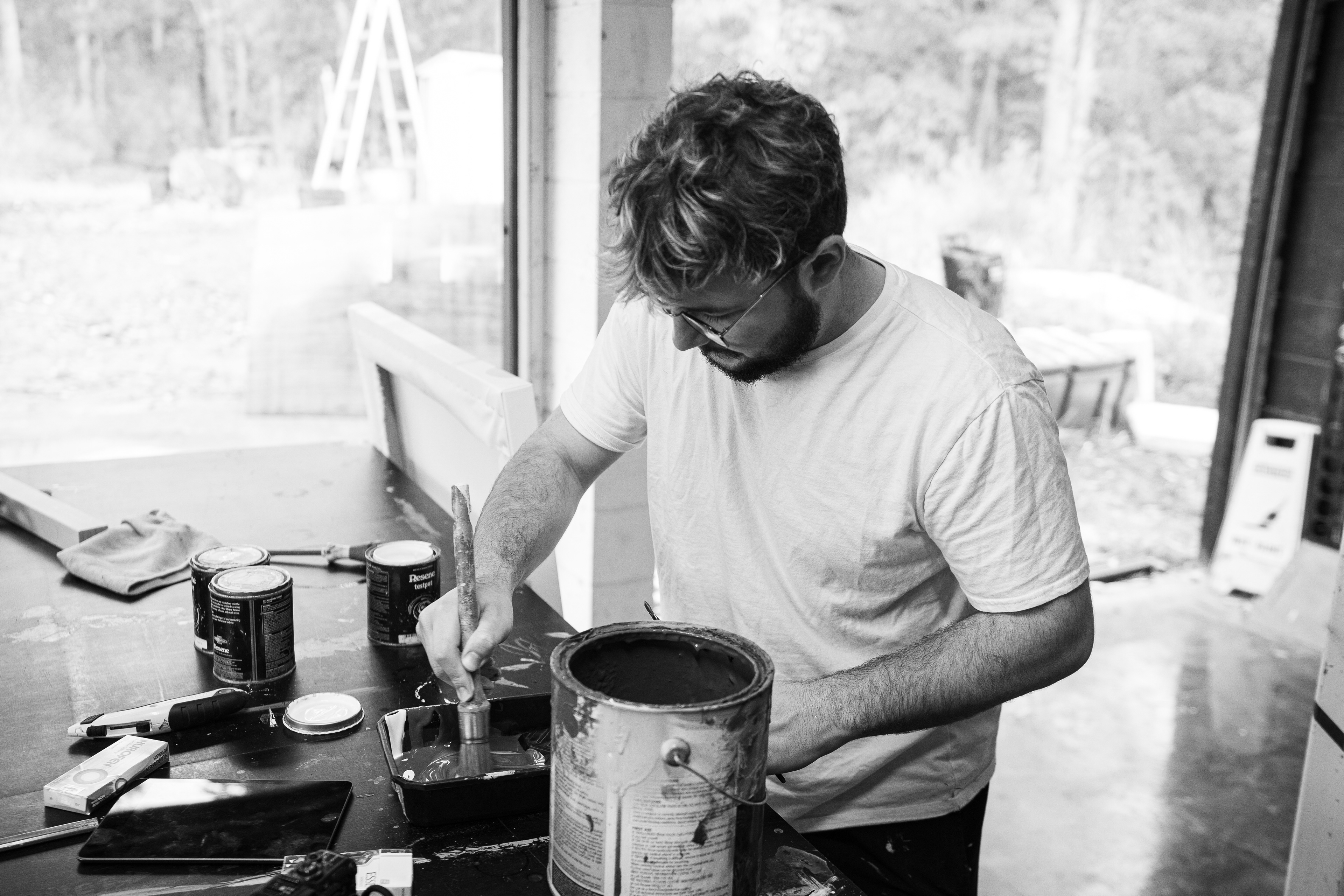 James Brooks, working on his debut solo show in Drapl's studio. July 2023 at Mt Nebo, Australia.