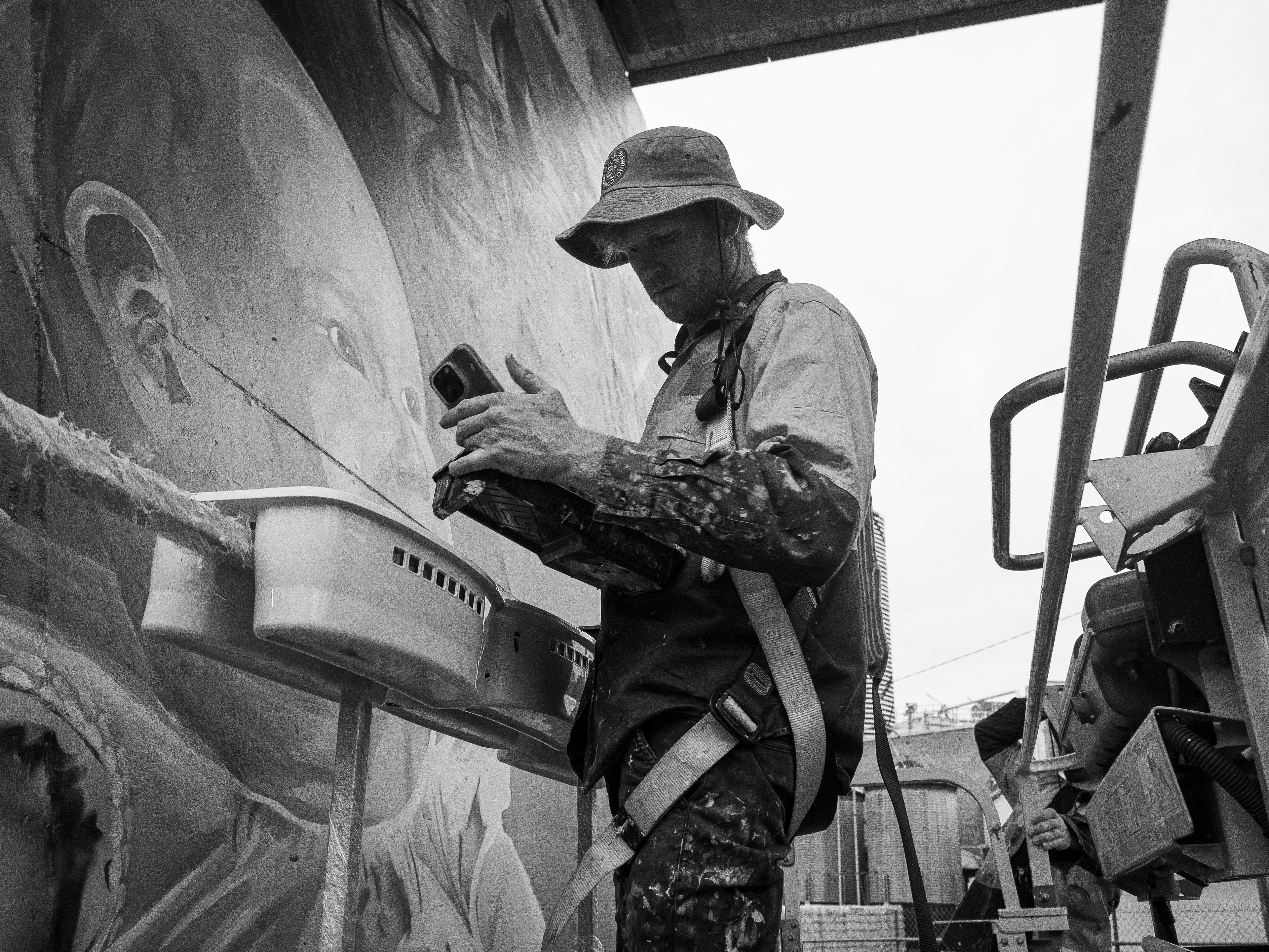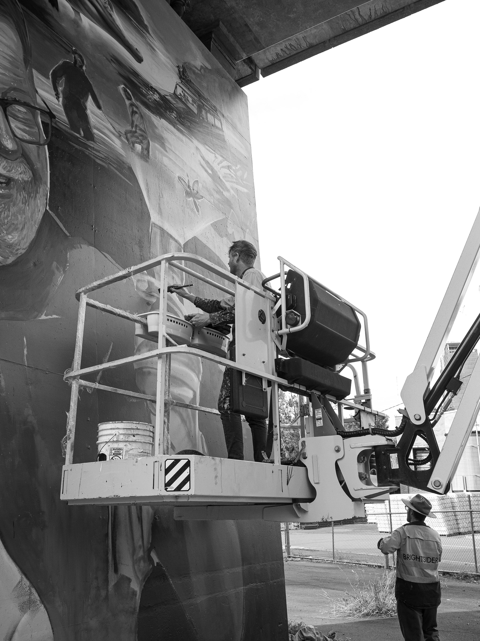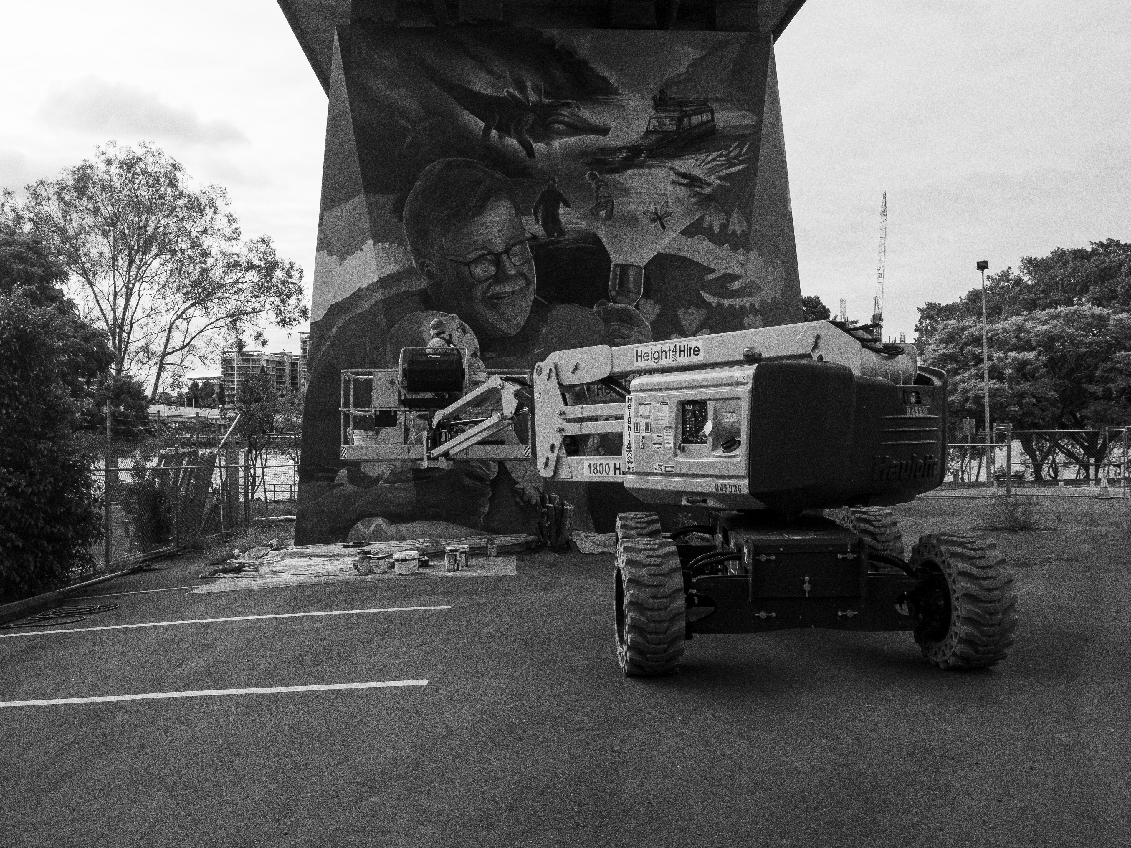 Joel Fergie a.k.a The Zookeeper painting a mural in South Brisbane, March 2025.